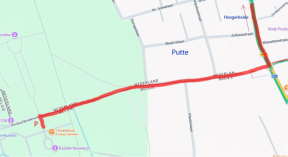Verzamelen: Om 10 uur op parkeerplaats ‘Ravenhofparking’. Navigeer naar Stabroek, straatnaam: Oud Broek. Vanuit Hoogerheide op de grens naar rechts, doorrijden waar je links het kasteel ziet. Zie de onderstaande schets.